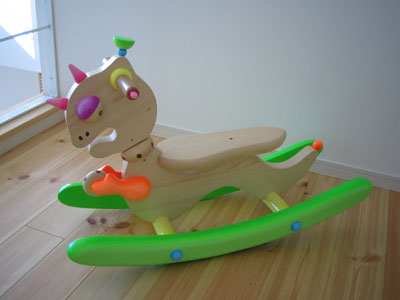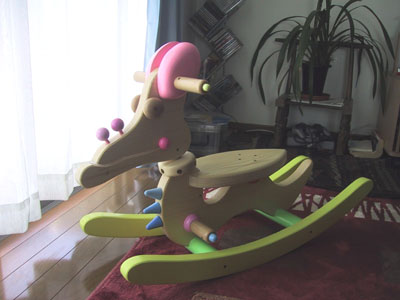 いままでの素朴な木馬とは違い色鮮やかなかわいらしい木馬です。